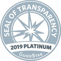 We have also earned the GuideStar 2019 Platinum Seal of Transparency, showcasing the progress and results we’re making toward our mission! See our profile here.